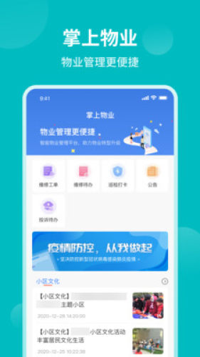 设备维修智能提醒,安防巡检科学高效,报修投诉随时处理,社区公告一键触达。