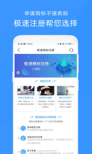 2 极速商标注册:极速商标注册当日提交,次日回执,15-30个工作日接收商标受理通知书,24小时可获官方申请书。10-12个月即可受理下达商标证书!!