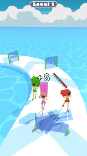 与对手奔跑,打破玻璃门和堆叠板。建造桥梁并走捷径以赢得比赛!游戏中玩家在水面上的赛道上进行跑酷闯关,赛道上各种各样的障碍物以及机关让人大开眼界。游戏的画风简约,给玩家带来了轻松悠闲的体验。