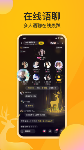 麋鹿语音app是一款娱乐社交类平台,该平台内汇集了来自各个地区的实名认证的用户们,有着多种多样的聊天方式,不管是语音连麦,还是游戏陪玩,总能在上面找到自己喜欢的,让缘分在此相遇,还有机会遇见自己心动的声音。