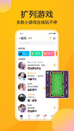 K歌,扩列,电竞,踢保,相亲海量娱乐派对,随时随地多人语音连麦畅聊。