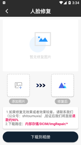 1.老照片快速修复app中拥有着多种特效功能,包括一些个性的贴纸和时下最潮流的美颜特效,让用户们可以自由的装饰自己的照片,打造出属于自己的审美。