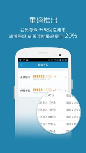4、重磅推出会员等级,升级就送徒弟;师傅等级,徒弟奖励最高提至20%