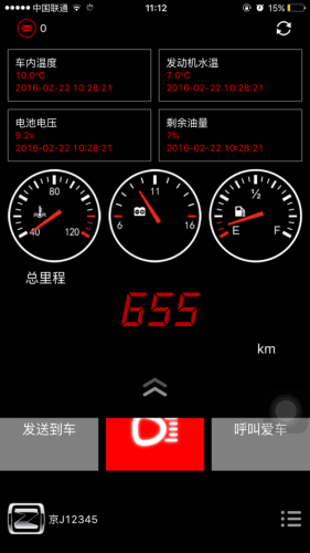 浏览车辆信息,如燃油余量、蓄电池电压、行驶里程。