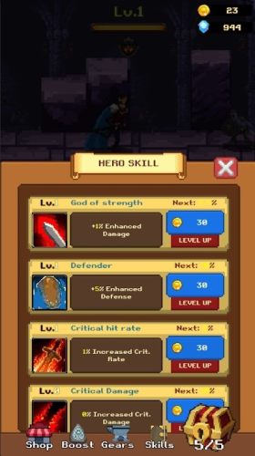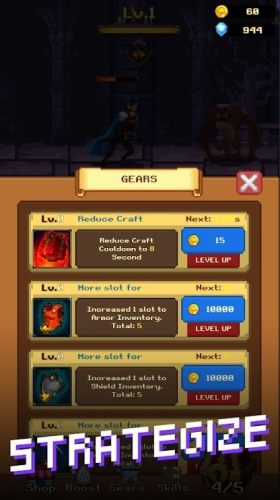 3、以经典的战士形象亚瑟王为主角进行闯关挑战,游戏中无需玩家操作亚瑟王进行战斗。