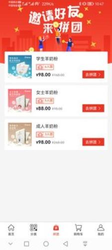 2,平台上依据社交电商以及回馈模式来进行设计了非常丰富的各种优惠活动,从最开始的会员折扣到后续的拼团专区以及对应的限时特惠等等,购物更省钱。