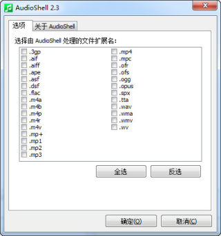AudioShell支持的音乐格式也非常多,像是MP3、WMA、ASF、WMV、MPG、M4A、M4P、MP4、OGG、FLAC、MPC、MP+、monkey's audio、WAV等等,几乎常见的格式都包括了。
