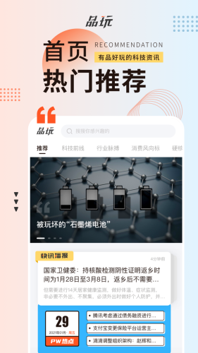 品玩APP,科技创新者的每日必读;首页频道中,每日热门资讯为您推荐;快讯频道,最新资讯您先知晓;还有热榜频道,优质热帖随时查看实时跟新最新进展。