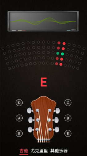 2.使用时,将手机靠近吉他,依次弹拨各个弦来测各弦音。
