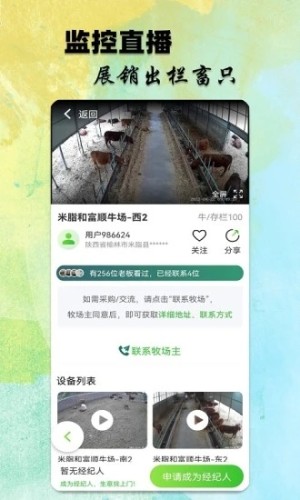 3、支持用户在线关注牧场,以便进入应用就能轻松找到,并能及时查看;