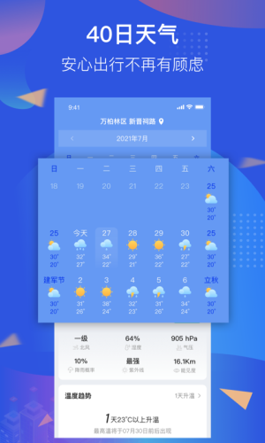未来40日的天气预报,温度趋势和降水趋势,给生活出行提前做好准备;