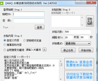 水笔逆袭贴吧自动水帖机是一款专门针对百度贴吧制作的自动水贴工具,这款软件可以帮助你自动回帖,包括普通回帖和楼中楼回帖两种水贴模式,这款贴吧自动水帖机绿色小巧,免费使用,你只需要登陆贴吧账号,选择目标贴吧,设置好水贴内容和水贴次数、频率它就能帮你自动水贴了,欢迎下载使用!