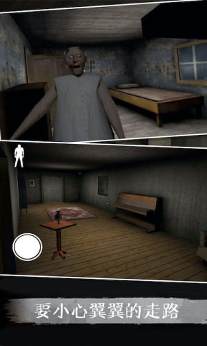 游戏开始的时候,玩家睡在房子的第二层,然后醒来发现门关着。玩家自己打不开门,需要奶奶的帮助。游戏中起床后,你会看到一张桌子。只要把桌子上的花瓶拿起来念咒,踢到桌子上的奶奶就会很快来。在此之前,我们应该躲在床下或橱柜里,以免被恐怖奶奶发现。