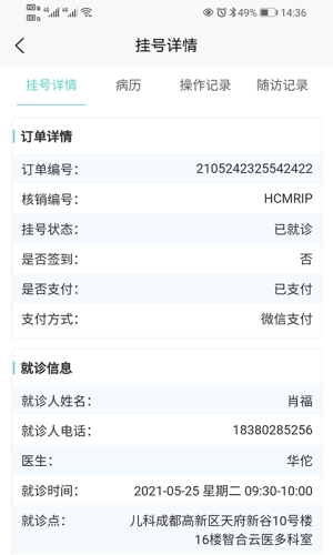 在本APP中,医院和医生可管理预约挂号信息,添加病历,变更挂号状态。