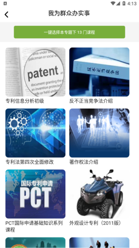 平台汇聚了一大批国内外知识产权知名专家和专业人士担任课程主讲老师,建立了完整、科学的知识产权课程体系,课程数量达到400多门,涵盖了不同的领域和层次,在为学员提供系统知识产权培训的同时,还为学员提供有针对性的专题培训,帮助学员全面提升知识产权能力水平。