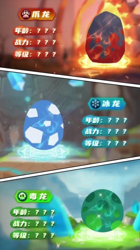 拥有不同属性的地面以及天空等各种巨龙,您可以培育它们并且孵化出全新的巨龙!