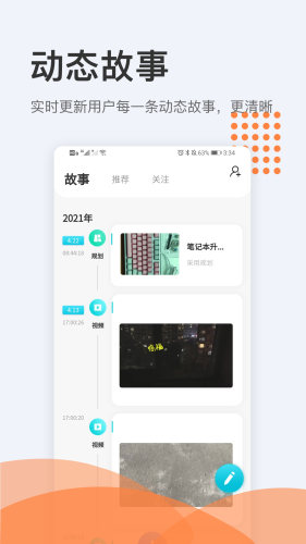 记录过去生活中发生的点点滴滴,包括说说、图片、视频、阅读、打卡等,