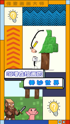像素画画大师是根据我的世界创意制作的手机游戏,发挥奇思妙想,用画画的方式来给这个像素世界一个玩法和故事,欢迎鬼畜画风的你来体验。