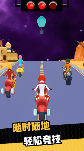 操作不难,控制摩托车的前进和后退,以及中心的前后就可以操控摩托车,但是如何吃到赛道上的加速道具,并且不受到别人的干扰就要玩家自己训练手感了。