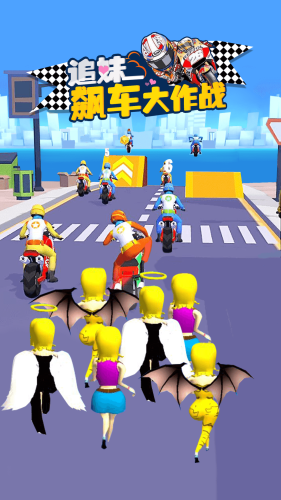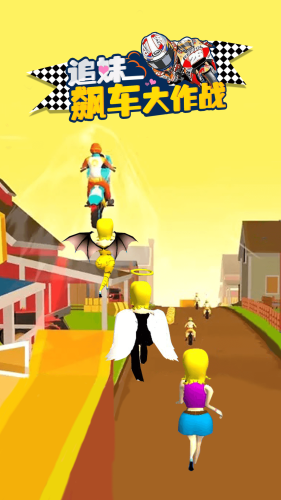 追妹飙车大作战,一个很鬼畜的休闲跑酷小游戏,骑上动感的摩托,让妹子跟着你跑,你的车技越好,吸引的妹子越多,到最后就能真正能收获想要的妹子呢。
