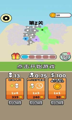 游戏里面的画面十分简单 ,而且都是关卡制的 ,每个关卡里面的敌人都特别弱,纯属打人机 ,轻轻松松就能占领整片小地图。