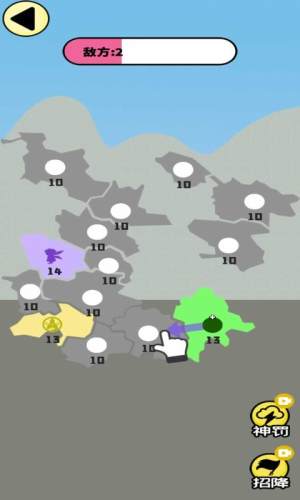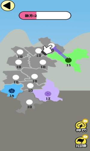 玩家只需点击存在兵力的区域再滑动到希望占领的地区,兵力就会主动出击前往攻占新的地区。