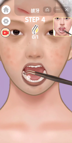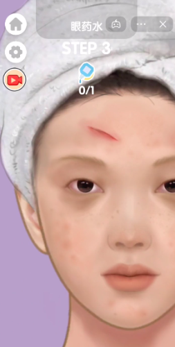 3、化妆第一步平滑肌肤,跟着教程使用工具,玩家只需要通过拖放化妆工具到面部位置,即可,如拖放挤痘针放置到面部虚线位置,就能获得平滑肌肤;