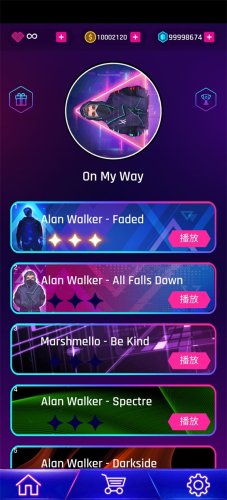 音舞之路游戏给玩家破解成进入后获得大量的金币和钻石,这是一款音乐节奏类型的跑酷闯关游戏,跟随着节奏来控制球球在道路上前进,穿过相同颜色的球球,躲避不同颜色的球!