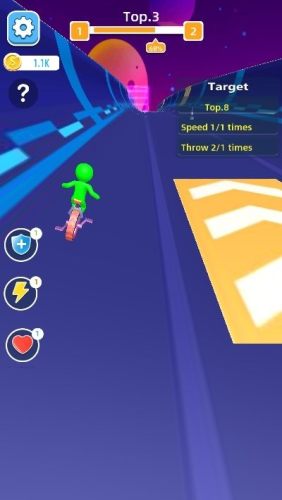玩法轻松简单的闯关竞技类休闲益智手游,只需要控制好角色的前进方向就能一直跑,需要巧妙的利用加速带,花式的避免场景中的障碍物,拥有高清的画质,独特的关卡。