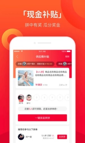 3、现金补贴,拼中有奖,瓜分奖金,便捷购物。