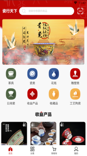 瓷行天下App,是由江西问彩汇陶文化有限公司开发的陶瓷器皿购物平台,合作高质量工厂,保证产品满意度,提供了茶具、瓷类、花瓶、雕塑类、日用瓷、收益产品、收藏品以及工艺陶瓷。