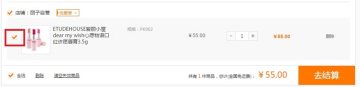 第三步:若点击去购物车结算,在购物车页面勾选需要结算的商品,点击去结算,如下图示: