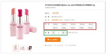 第一步:勾选商品对应的规格(红色框内容)、填写购买数量(绿色框内容),点击加入购物车,见下图: