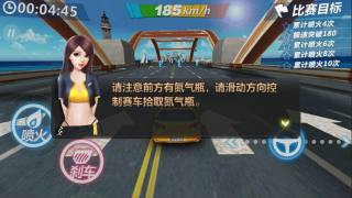 游戏中赛车行驶的方向是由屏幕右下方的方向键左右滑动进行掌控,而屏幕右下角则是“喷火”和“刹车”的功能按钮。生涯模式第一章的1、2小节分别是“喷火”加速和“漂移”的详细教学。