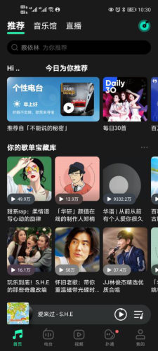 这次10.0版本把音乐馆及听歌识曲移到首页,一打开就是今日推荐,专门为你量身定制的音乐,你还嫌弃你听的歌曲不好听嘛?