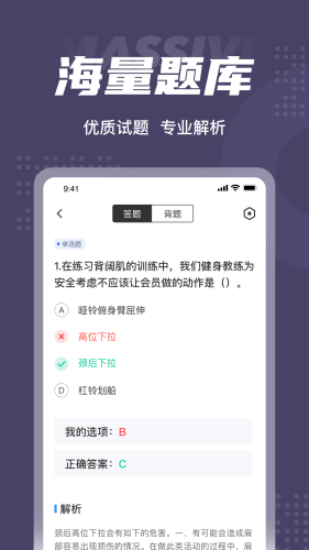 健身教练资格证考试聚题库app是一款手机题库软件,健身教练资格证考试聚题库app中拥有海量的题目资源,用户可以通过app进行刷题练习,提高考试通过几率。