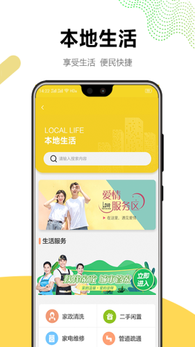 1、同城服务:房屋买卖租赁,招聘求职,新车二手车买卖,二手闲置,汽车租售,酒店旅游,做您身边的贴身管家。