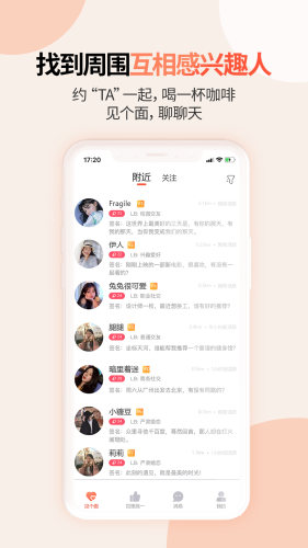 见个面是一款集附近的人、聊天、交友、社交于一身的APP,是以“约咖啡”为主打功能的社交应用。