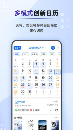* 传统日历、吉凶日历、天气日历,多种模式随意选择