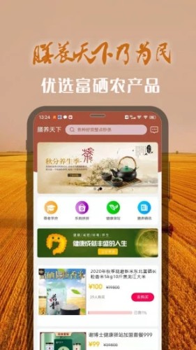 膳养天下app是一款十分实用的省钱购物软件。软件主要介绍第七代靶向硒的技术产品并进行线上买卖,学习硒的作用以及如何去使用硒,了解硒与健康密切相关的知识 。帮助更多人参与补硒的队伍中来。