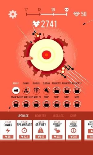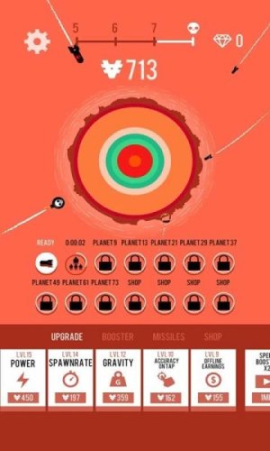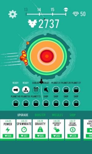 2、将行星催毁后,你能升级你的宇宙飞船和导弹朝着别的星球开展进攻,还能够开启新一代的关卡。