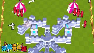 弟弟有点强,一款趣味休闲竞技小游戏,游戏画风简单,玩法主要是通过扔塞子来打敌人,注意一次打中3人才能算胜利,这就非常考验玩家的准头和预判能力了。