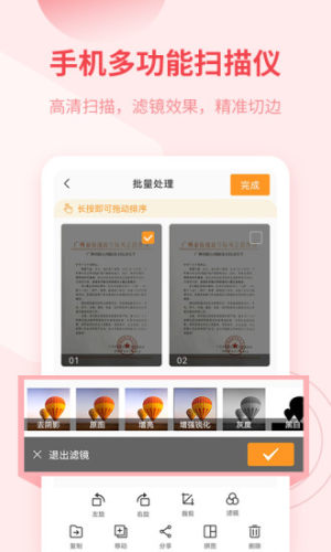 3、最后在扫描中有重拍、旋转、裁剪、滤镜;