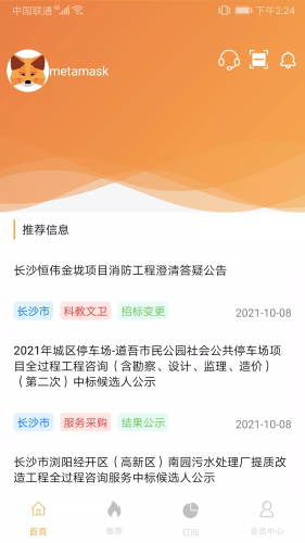 metamask是一款全面、便捷的招投标服务软件,专门提供招投标信息查询、招标信息订阅、招标信息推送、招投标商情监测、招标信息预报、资质找项目,里面的多种工具助您把握商机,捷足先登。