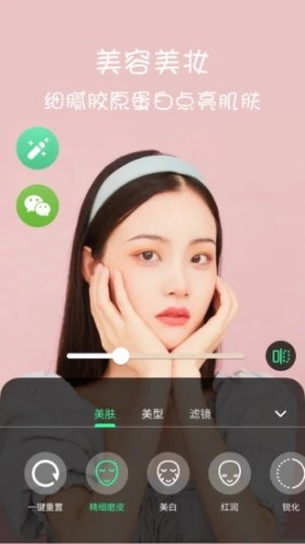 美颜美肤:自拍视频美颜相机,精细磨皮、美白、红润、锐化,分分钟提升气色,让你皮肤焕发美白自然红润的光泽,无惧实时视频聊天的气色问题。