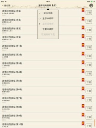 听果是一款优秀的听书应用,听果iPad版具有国风界面,简洁易用,在线收听,批量下载,收听免费,wifi下载,不花流量不花钱等等众多特点,快来试试吧。