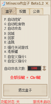 Minecraft盒子是无知语3の幻想工作室出品的一款简单小巧的游戏辅助工具,该辅助拥有自动挖矿、自动吃食物等十多项功能,绝对可满足用户的基本操作需求。