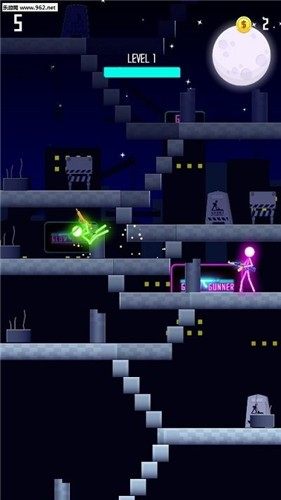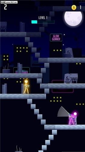 1.超多不同射击关卡等你选择,每一个不同色彩的霓虹人会在不同关卡对你有不同的帮助,玩家自由选择。
