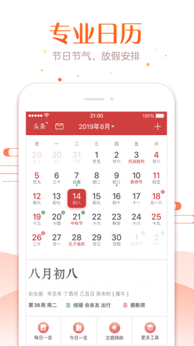 适合中国人的万年历,集日历、农历、记事、提醒于一身的生活助手。