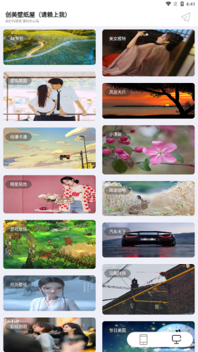 创美壁纸屋app,汇聚大量高清壁纸资源,类型丰富,资源全面,挑选喜欢的壁纸,免费下载,一键设置为手机桌面,海量高清壁纸任你选择,满足用户需求。